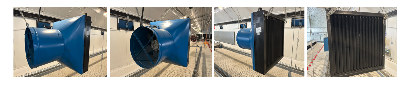 Система туманообразования (форсунки): распыляет воду под высоким давлением, создавая холодный туман. Может работать как с боковой, так и с туннельной вентиляцией. Требует точного контроля влажности, чтобы избежать переувлажнения.