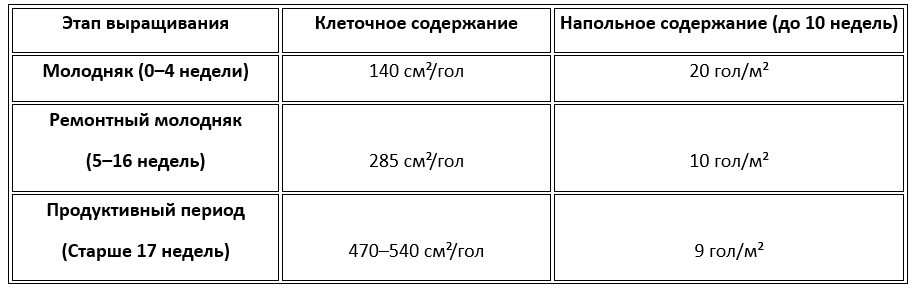 Влияние плотности: перенаселение ведет к стремительному распространению инфекций, повышению влажности и концентрации вредных газов (аммиака), что вызывает стресс и снижает яйценоскость.