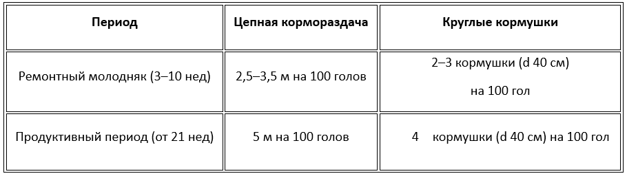 Для обеспечения одновременного доступа к корму и равномерного развития стада крайне важен достаточный фронт кормления, который обеспечивается цепными или шнековыми (спиральными) системами подачи корма.