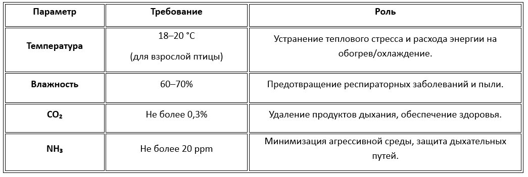 Важно: для молодняка скорость воздуха должна быть значительно ниже (не более 0,15 м/с).