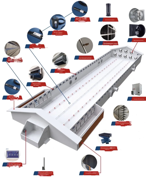 - Комплексное управление: контроллеры управляют не только микроклиматом, но и процессами кормления, взвешивания птицы, освещением и другими производственными аспектами.