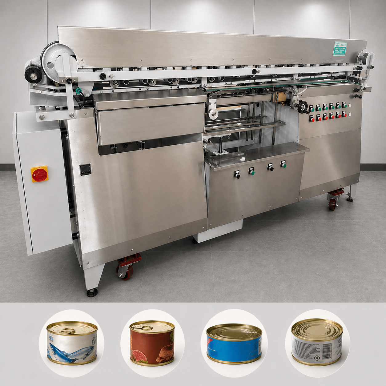 - Диапазон диаметров консервов: φ60 мм - φ100 мм